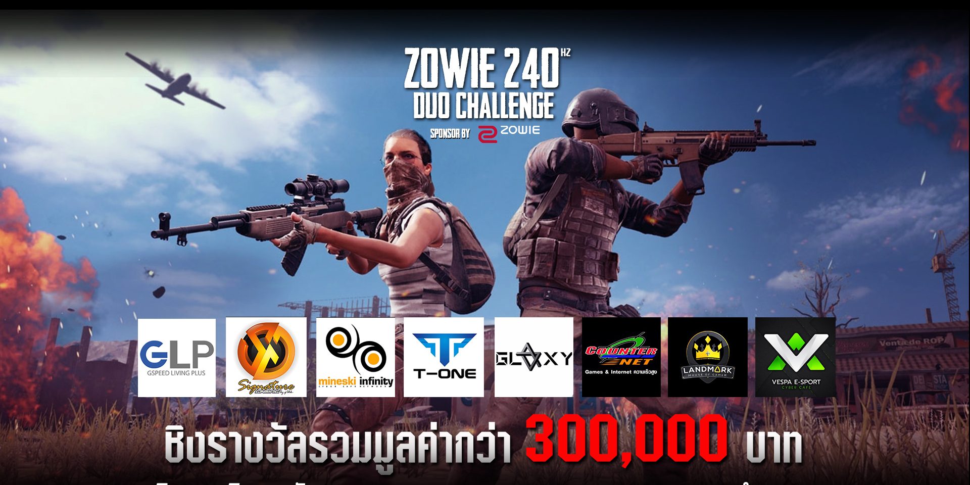 พบกับการถ่ายทอดสดการแข่งขันรายการ ZOWIE PUBG 240Hz DUO CHALLENGE รอบออนไลน์วันที่ 2 แข่งขันจากร้านอินเตอร์เน็ตคาเฟ่ทั้ง 9 สนามทั่วกรุงเทพฯ ชิงรางวัลรวมกว่า 300,000 บาท